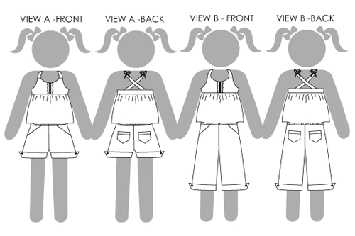 Hannah is a set of adorable flat-fronted shorts and capri pants with inset pockets, contrast cuffs and a flared hem reminiscent of nautical sailing pants. Pair them up with our easy-to-sew Carefree Cropped Top and she will be the cutest girl at her next beach or pool party.