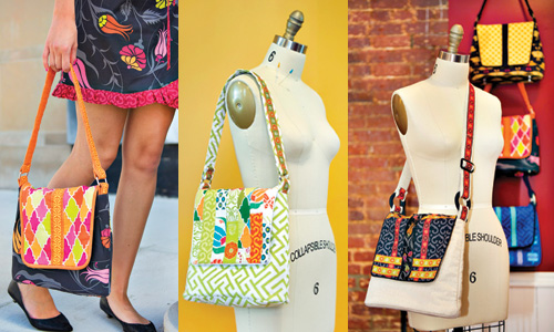 SUGGESTED FABRICS: quilting weight cottons, shirting, denim, corduroy, linen & twill, 44”/45”or 60” wide. We used fabrics from Patty Young’s collections, Flora & Fauna and Grand Bazaar and embellished our purses with Patty’s Jacquard Ribbons.
